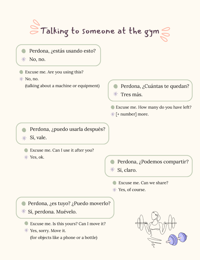 Talking to someone at the gym (five dialogues)