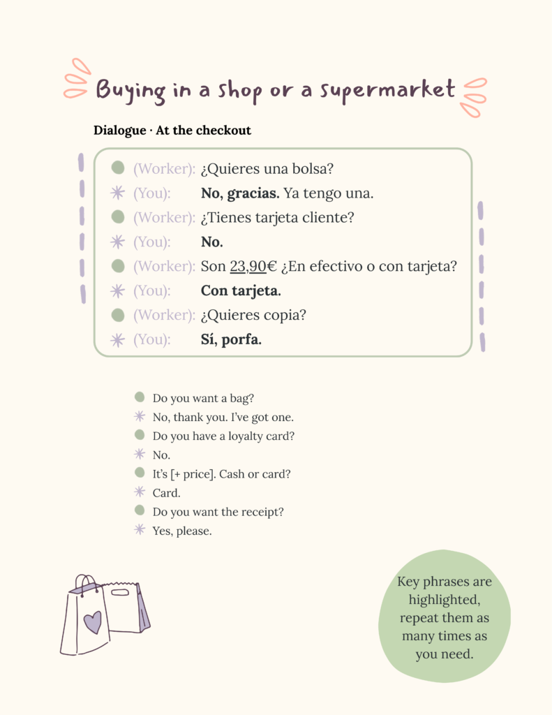 Before starting, it’s helpful to be familiar with how to understand and say the time, the days of the week, and numbers (at least up to 100).
